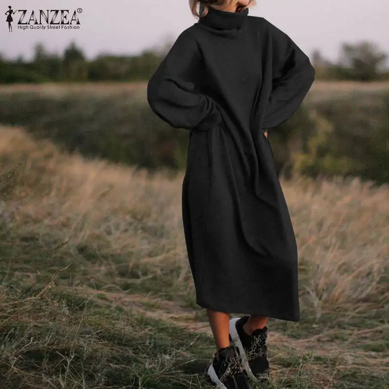 Big Deal ZANZEA Plus Size Women Long Maxi Dress Casual Turtleneck Pullover Sweatshirt Dresses Female Sweatsh