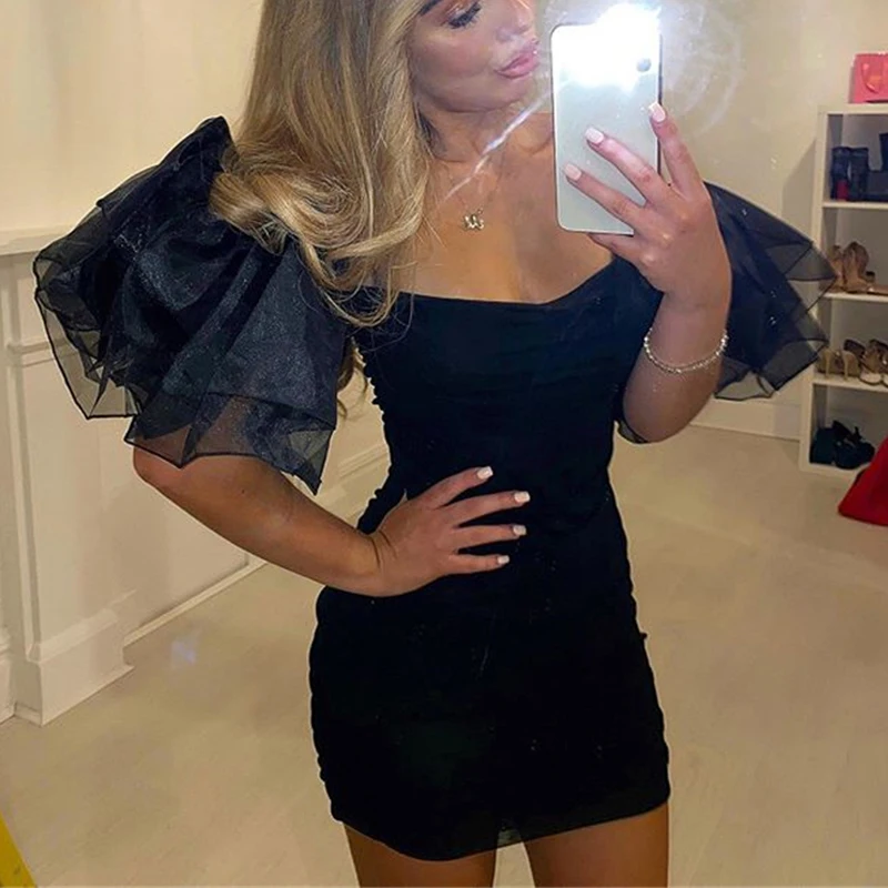 Flash Sale Tobinoone Ruffle off shoulder club sexy dress Vintage bodycon black Autumn dress 2019 short mini pa